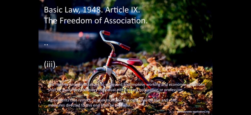 Art. 9 GG Abs. (3): das Recht, zur Wahrung und Förderung der Arbeits- und Wirtschaftsbedingungen Vereinigungen zu bilden, ist für jedermann und für alle Berufe gewährleistet. Abreden, die dieses Recht einschränken oder zu behindern suchen, sind nichtig, hierauf gerichtete Maßnahmen sind rechtswidrig.