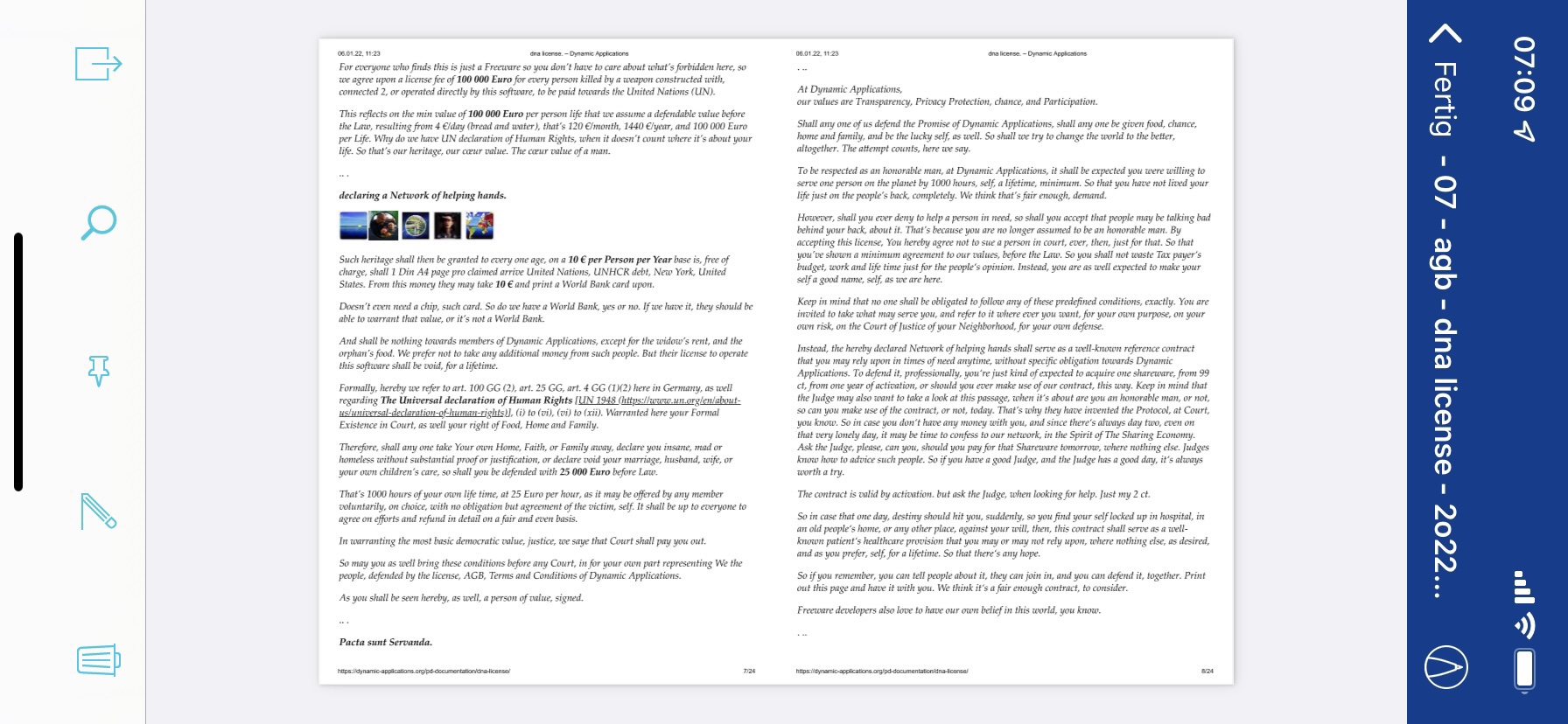 Das Konzept des Netzwerks der helfenden Hände wurde als Teil der dna License veröffentlicht.