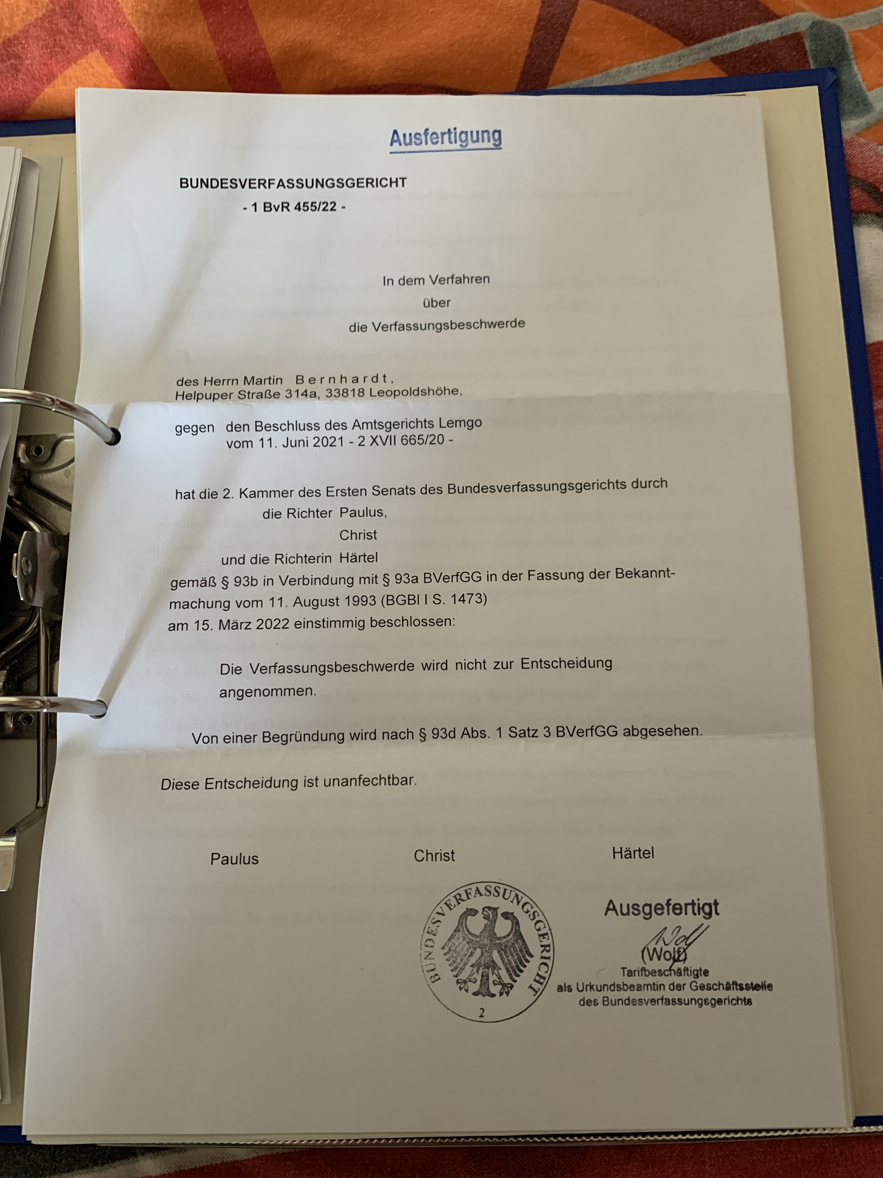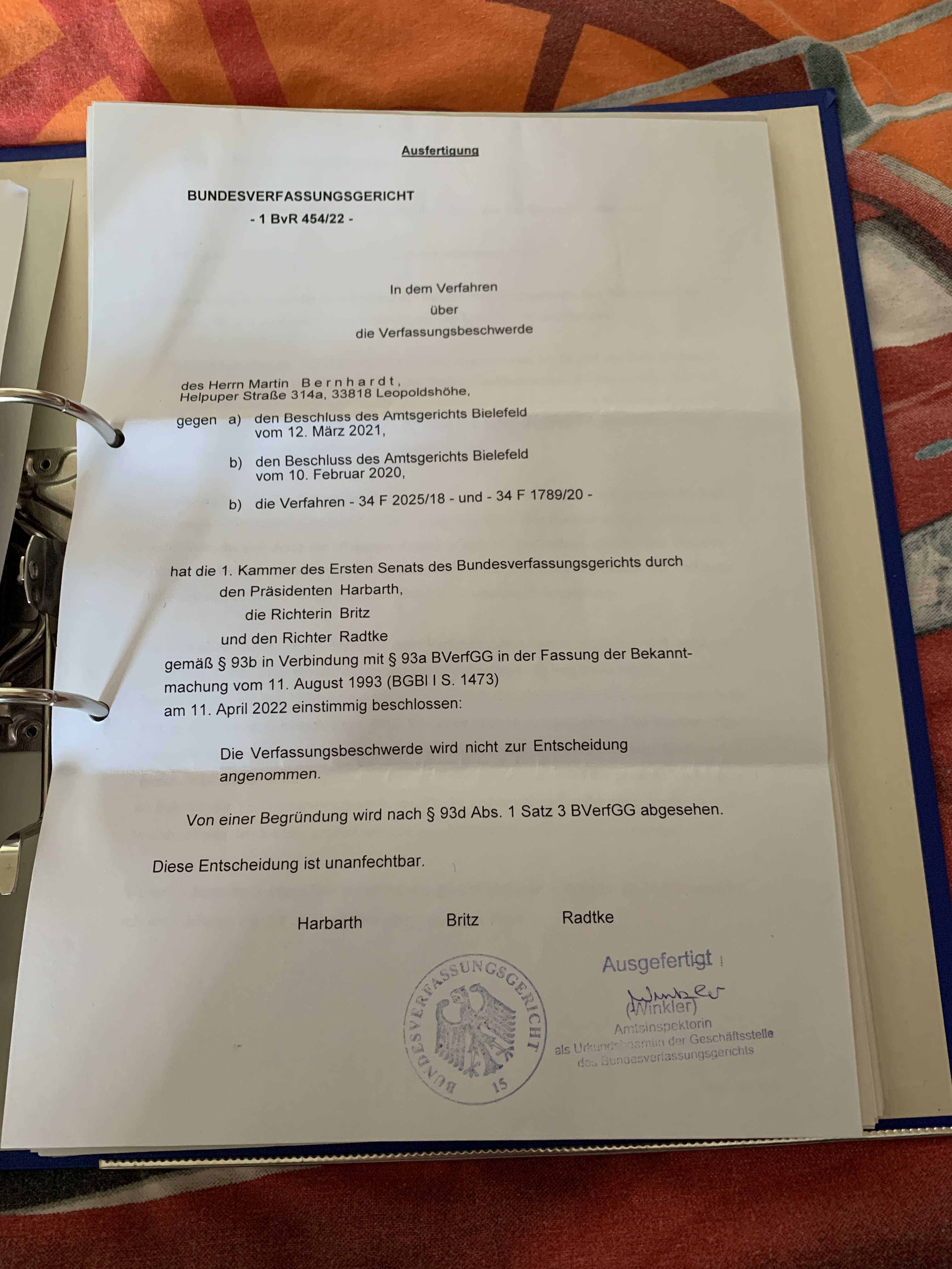 BvR 455/22 (protocol form, ability), BvR 454/22 (family child care clarification) (see AGB).