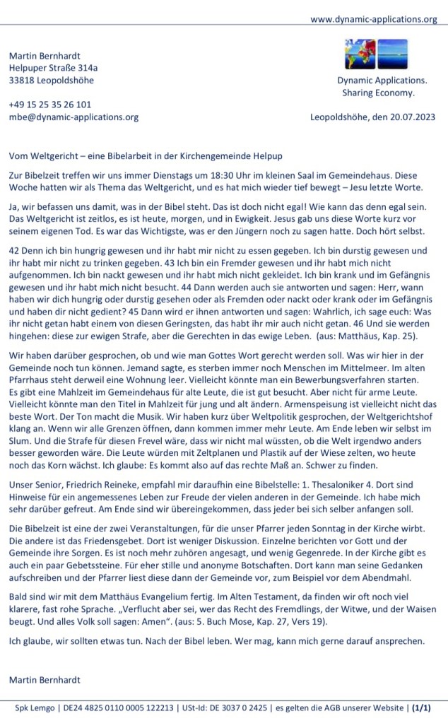 Und dann wird das LG Detmold zuständig als nächst höhere Instanz, mit 3 Richtern. Die richten es nach 12 Wochen. Und das ist natürlich ein gewisser Aufwand, gebe ich zu, und das ist auch alles zu bedenken und beraten, aber am Ende steht eine 75% Proklamation dagegen von unserem Bürgerbündnis für Demokratie und Toleranz, und das müssen auch die Gerichte akzeptieren. Also an und für sich stehen die ja auch nicht über dem Gesetz, und wir sind frei nach Artikel 2 und wo steht das geschrieben, dass man keinen arme Leute Tresor verlangen darf von einem Amtsgericht. Das war jetzt nur für Juristen.